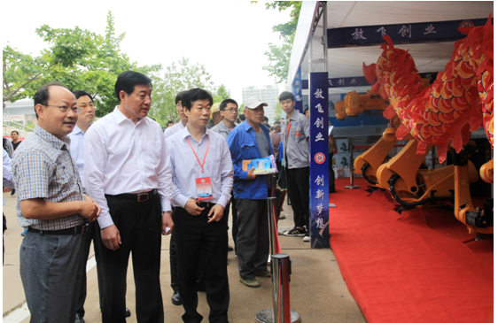 我公司參加此次大賽的創(chuàng)客創(chuàng)新展示。展會期間,中國科學院院士、中國自動化學會副理事長吳宏鑫,中共日照市委副書記、市長劉星泰來我公司展區(qū)視察指導,對我公司工業(yè)機器人和服務類機器人給予充分肯定。